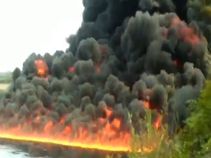 ডিব্রুগড়ের বুড়িদিহি নদীতে জ্বলছে আগুন। আতঙ্কে কাঁপছে স্থানীয় বাসিন্দারা। ঘটনাটি ঘটেছে ডিব্রুগড়ের নাহারকাটিয়ার সাসোনি গ্রামে ঘটনাটি ঘটেছে। তেলের পাইপলাইন বিস্ফোরণের জেরে ছড়িয়ে পড়ে আগুন। স্থানীয় বাসিন্দাদের তরফে জানা গিয়েছে, অয়েল ইন্ডিয়া লিমিটেডের ডুলিয়াজান প্ল্যান্ট থেকে তেলের একটি পাইপ নদীর তলা দিয়ে গিয়েছে। সেই পাইপলাইনটি ফেটে গিয়েই নদীতে আগুন ছড়িয়ে পড়েছে। আগুনের তীব্রতার ভিডিও ছড়িয়ে পড়েছে সোশ্যাল মিডিয়াতে। আগুন নেভাতে গিয়ে হিমশিম অবস্থা আসাম সরকারের। কেন্দ্রের পাশাপাশি এগিয়ে এসেছে একাধিক কেন্দ্রীয় সংস্থাও। কিন্তু এখনও পর্যন্ত আগুন নিয়ন্ত্রণে আসেনি। দেখুন সেই ভিডিও –