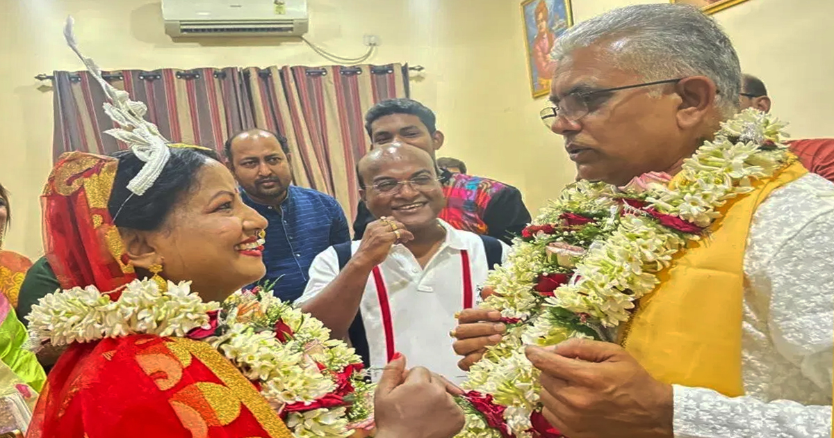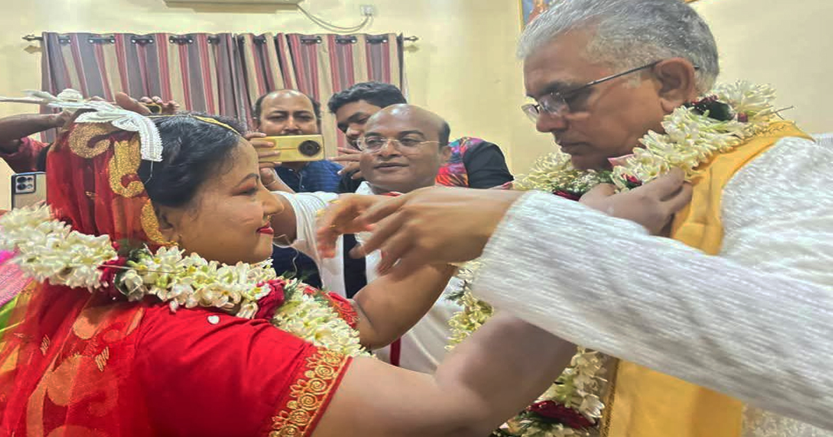 অবশেষে চার হাত এক হল। শুক্র সন্ধ্যায় রিঙ্কু মজুমদারের সঙ্গে গাঁটছড়া বাঁধলেন বিজেপি নেতা দিলীপ ঘোষ। বিয়ে সেরেই স্ত্রীকে পাশে নিয়ে সাংবাদিকদের মুখোমুখি হলেন দিলীপ ঘোষ। দিলীপ ঘোষ বললেন, “সকলের শুভেচ্ছা কাম্য।” ২০২১ সালে প্রাতঃভ্রমণের সময় পরিচয় দু’জনের। রিঙ্কু বিজেপি মহিলা মোর্চার নেত্রী হওয়ায় আলাপচারিতা প্রায়ই হত । সেই কথোপকথন ভালোবাসায় পরিণত হয় । গত সেপ্টেম্বরে দিলীপকে বিয়ের