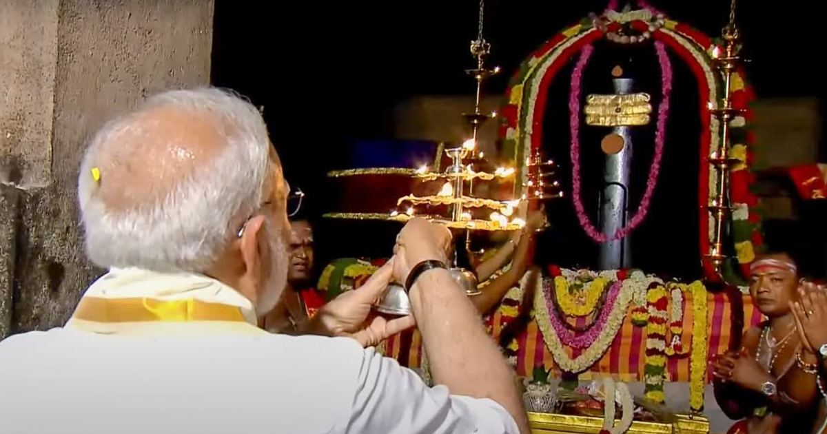 তামিলনাড়ুর আরিয়ালুর জেলার ঐতিহাসিক গঙ্গাইকোন্ডা চোলাপুরম মন্দির দর্শনে যান ৷ সেখানে দেশবাসীর জন্যে প্রার্থনা করেছেন বলে জানান মোদি ৷ আগামী বছর তামিলনাড়ুতে বিধানসভা নির্বাচন ৷ আর তার কয়েক মাস আগে দক্ষিণের কিংবদন্তি চোল রাজা প্রথম রাজেন্দ্র চোলের জন্মজয়ন্তীতে প্রধানমন্ত্রীর এই সফরকে বিশেষ তাৎপর্যপূর্ণ বলে মনে করছে রাজনৈতিক মহলের একটা বড় অংশ ৷ এদিন চিরাচরিত দক্ষিণী বেশে মন্দিরে যান প্রধানমন্ত্রী মোদি ৷ তাঁকে স্বাগত জানান স্থানীয় পুরোহিতরা ৷ তাঁকে মন্দিরে মন্ত্র উচ্চারণ করতে দেখা যায় ৷ তিনি একটি কলসিও সঙ্গে নিয়ে গিয়েছিলেন ৷ তাতে গঙ্গা নদীর পবিত্র জল ছিল ৷ প্রধানমন্ত্রী মোদি বলেন, “আমি ১৪০ কোটি ভারতীয়ের কল্যাণের জন্য এবং দেশের উন্নতির জন্য প্রার্থনা করেছি ৷” প্রধানমন্ত্রী আরও জানান, চোল রাজাদের নামের সঙ্গে আন্তর্জাতিক মঞ্চে ভারতের পরিচিতি নিবিড়ভাবে জড়িত ৷ তাঁদের কীর্তি ভারতীয়দের কাছে আজও গর্বের বিষয় ৷ সিঙ্গাপুর ও মলদ্বীপ সফর শেষ করে শনিবার দেশে ফিরে তামিলনাড়ুর থুঠুকুড়িতে পৌঁছন প্রধানমন্ত্রী ৷ সরকারি অনুষ্ঠান থেকে বেশ কিছু প্রকল্পের উদ্বোধন করেন ৷ এরপর রবিবার তিনি আরিয়ালুর জেলার ঐতিহাসিক গঙ্গাইকোন্ডা চোলাপুরম মন্দির দর্শনে যান ৷ তাঁকে মন্দিরের চিরাচরিত ‘পুরানা কুম্ভম’ রীতি অনুযায়ী স্বাগত জানানো হয় ৷ এই প্রাচীন মন্দিরটি ঘুরে দেখেন প্রধানমন্ত্রী ৷ ইউনেসকো এই স্থানটি ‘ঐতিহ্যবাহী স্থানের’ স্বীকৃতি দিয়েছে ৷ প্রধানমন্ত্রী বিভিন্ন উপাচারেও অংশ গ্রহণ করেন ৷ চোল রাজাদের শাসনকালে শিবের পুজো এবং স্থাপত্য নিয়ে একটি প্রদর্শনীর আয়োজন করা হয়েছে মন্দিরে ৷ সেই প্রদর্শনীটিও ঘুরে দেখেন প্রধানমন্ত্রী ৷ থিরুভাথিরাই উৎসবে প্রধানমন্ত্রী মোদি বলেন, “সংস্কৃতি মন্ত্রক একটা দারুণ প্রদর্শনীর আয়োজন করেছে ৷ এখান থেকে অনেক কিছু জানা যায় ৷ অনুপ্রেরণা পাওয়া যায় ৷ প্রায় এক হাজার বছর আগে মানব সভ্যতার কথা জেনে আমরা গর্বিত ৷ হাজার হাজার মানুষ ভিড় করছেন ৷ চিন্ময় মিশনের উদ্যোগে আমি তামিল গীতার প্রচলনের সুযোগ পেয়েছি ৷ সবাইকে ধন্যবাদ জানাতে চাই ৷” চোল রাজাদের প্রসঙ্গে প্রধানমন্ত্রীর বক্তব্য, “চোল রাজারা তাঁদের রাজনৈতিক ও ব্যবসায়িক সম্পর্ক শ্রীলঙ্কা থেকে শুরু করে মলদ্বীপ এবং দক্ষিণপূর্ব এশিয়া পর্যন্ত নিয়ে গিয়েছিলেন ৷ এটা একটা সমাপতন যে আমি গতকাল মলদ্বীপ থেকে ফিরেছি এবং এখানে এই উৎসবে সামিল হয়েছি ৷ আমাদের পুরাণে লেখা আছে, শিবের অনুগামীরা নিজেদের এমনভাবে ভক্তিতে নিমজ্জিত করেন যে তাঁদের অস্বস্তি কেউ কখনও মুছে দিতে পারে না ৷ সেভাবেই চোল সাম্রাজ্যও অমর হয়ে গিয়েছে ৷”